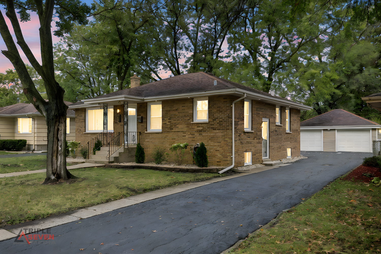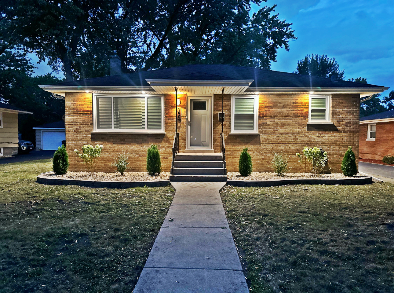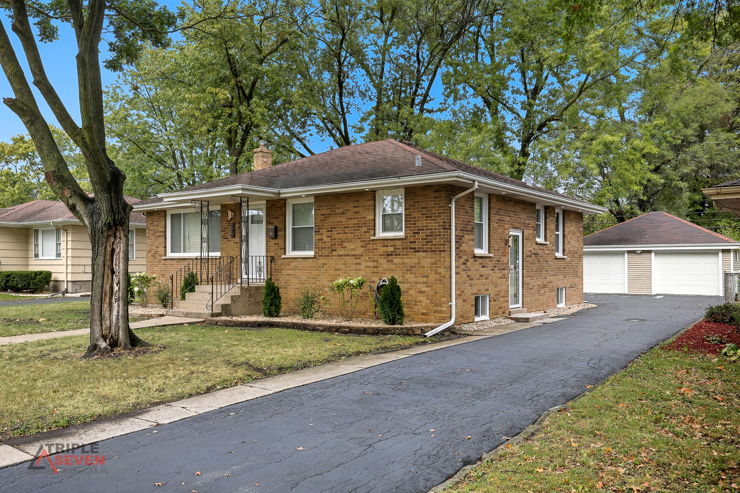 All-brick spacious ranch with high-end finishes throughout, this 5 bedroom home truly offers peace of mind and move-in-ready comfort. The kitchen showcases white and gray shaker cabinets, quartz countertops with matching backsplash, a spacious waterfall island, deep farmhouse sink and all stainless-steel appliances. Enjoy two beautifully updated bathrooms with ceramic tile showers and flooring. The finished basement offers a large rec room with ceramic floors, a cozy fireplace, plus two additional bedrooms and a full bathroom - perfect for guests or extended living space. Additional highlights include wood laminate flooring throughout the main level, custom wainscoting and accent millwork walls, and new windows. Step outside to a spacious backyard - ideal for entertaining, gardening, or relaxing outdoors. The property sits on just under 1/4 acre and features a 2 1/2 car detached garage with ample driveway space for additional parking. With generous living areas on both levels and beautiful updates throughout, this home offers exceptional value for all the space - inside and out! See this beauty today!